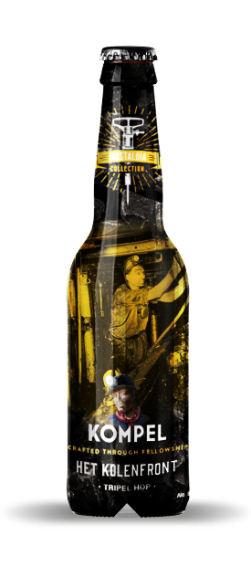 Ik begon met onderzoek naar lokale geschiedenis en sprak met oud-mijnwerkers en hun families. Het werd duidelijk dat Kompel geen merk was dat zomaar een verhaal claimde, maar er zelf deel van uitmaakte. Vanuit die kern ontwikkelde ik een concept waarin historische foto’s en verhalen letterlijk op de fles kwamen. Elke variant vertelt een episode uit het mijnwerkersleven, waardoor de consument niet alleen een bier drinkt maar ook deel uitmaakt van een groter verhaal. De strategie was om authenticiteit als merkfundament neer te zetten: echt, herkenbaar en onvervalst lokaal.